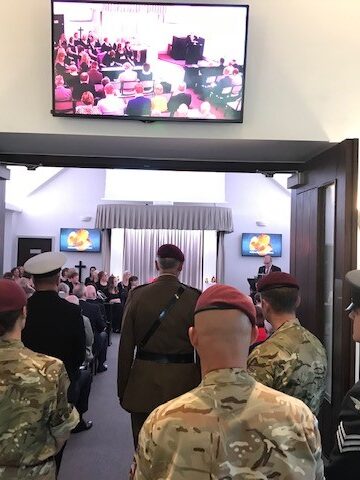 Saturday last was the exact day 40 years ago the first British troops landed in San Carlos Bay, a packed chapel of over 120 people were deeply moved by the tribute video, poems from veterans and local people along with representatives from every sector of the armed forces both young and old.